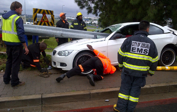 Εξαιρετικά τυχερός στάθηκε ο οδηγός μια λευκής BMW 335i στο Γιοχάνεσμπουργκ της Νοτίου Αφρικής, καθώς, παρότι η μπαριέρα διαπέρασε το αυτοκίνητο, αυτός τη γλύτωσε με μερικές γρατζουνιές.