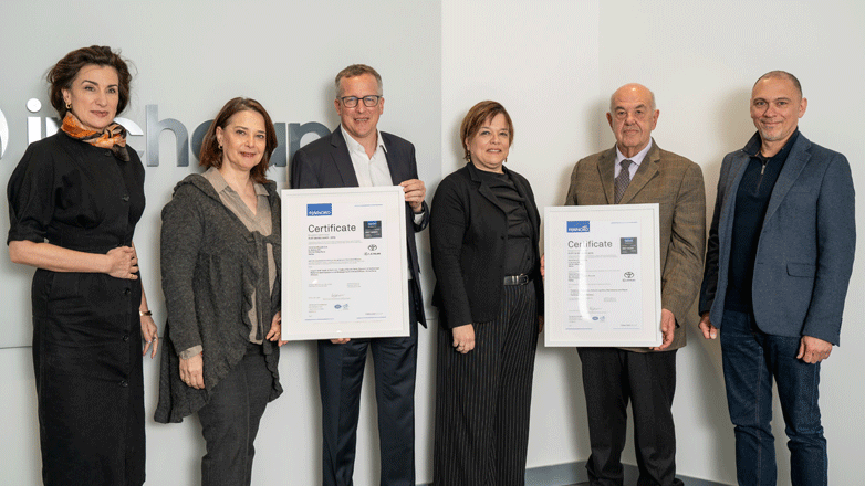 Η απονομή των σχετικών πιστοποιητικών πραγματοποιήθηκε σε ειδική εκδήλωση παρουσία του Διευθύνοντος Συμβούλου της TOYOTA HELLAS κ. Hermann Riedl ενώ την TÜV HELLAS (TÜV NORD) εκπροσώπησαν η Διευθύνουσα Σύμβουλος της εταιρείας κυρία Βασιλική Καζάζη και η κυρία Βασιλική Καλαμποκίδου, Διευθύντρια Πιστοποίησης Συστημάτων του φορέα.