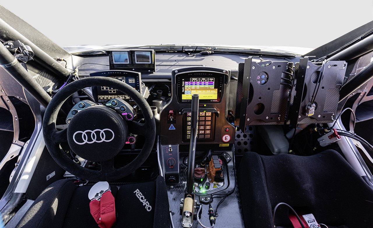 Η Audi αποκάλυψε λεπτομέρειες από το πιλοτήριο του RS Q e-tron, το αγωνιστικό πρωτότυπο το οποίο θα δούμε στο φετινό μαραθώνιο. Παρατηρείστε τις μεγάλες οθόνες που κυριαρχούν σε όλο το πλάτος του πίνακα οργάνων. Στο παρελθόν, υπήρχε σαφής κατανομή των καθηκόντων στα ράλι cross-country. Όλοι ξέραμε ότι ο οδηγός οδηγεί και ο συνοδηγός πλοηγεί. Αυτοί οι ρόλοι έχουν αλλάξει εδώ και πολύ καιρό.