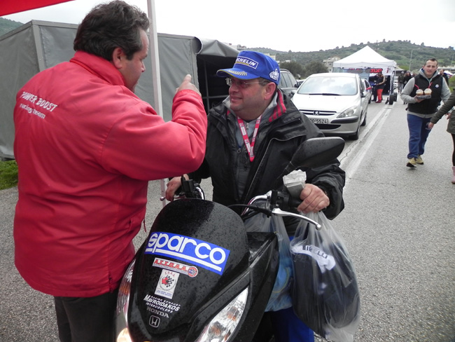 Ο Πατσουρέας με μαύρο γυαλί για να δείχνει πιο… κακός! Μάλλον αυτά φόραγε και ξέχασε να πατήσει το κουμπάκι των διαφορικών… Στον επόμενο αγώνα θα.. πυροβολήσει…