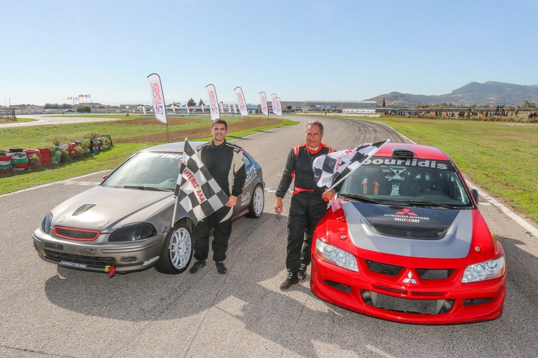 Ο Σταμάτης Κατσίμης (ΑΛΜΑ Αιγίου) με το ασημί Honda Civic και ο Ματθαίος Μπουρλίδης (Ροδιακός Σύλλογος)