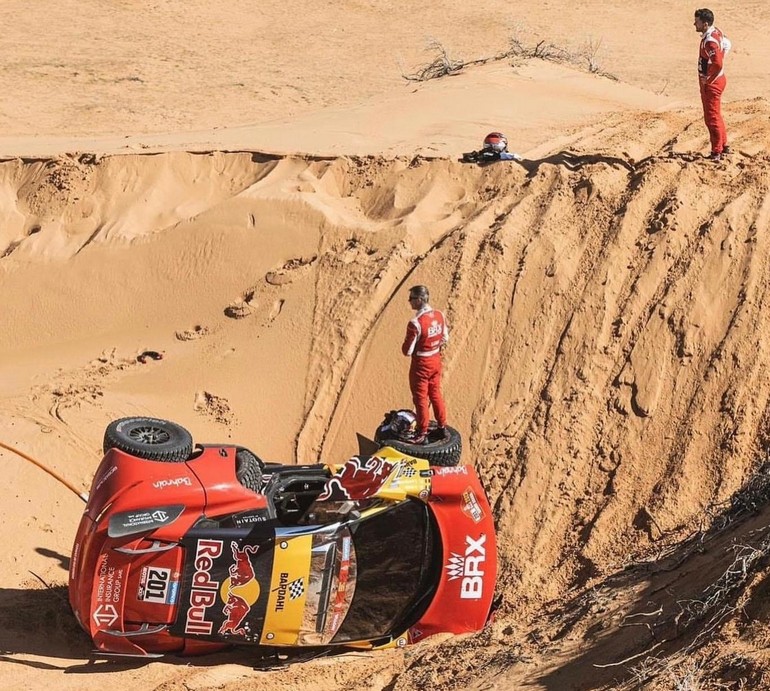 Το λάθος του Loeb επέτρεψε στον Sainz να περάσει δεύτερος αφού στο τελευταίο κομμάτι πέρασε και τον Peterhansel.  Η αλεπού της ερήμου, ο Ισπανός πρωταθλητής στο WRC ταλαιπωρείται αρκετά από έναν ελαφρύ τραυματισμό στον αυχένα. Πονάει αλλά δεν το βάζει κάτω. Ο Ισπανός είπε ότι νομίζει ότι τραυματίσθηκε από μια βαριά συμπίεση και ελπίζει αύριο Παρασκευή να έχουν υποχωρήσει οι πόνοι.