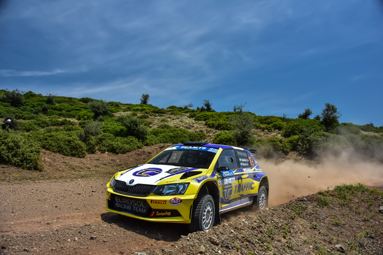 Το πλήρωμα από την Θεσσαλονίκη με… όπλο τους, ένα ολοκαίνουργιο Skoda Fabia R5 της ουγγρικής ομάδας Eurosol, απέδειξε ότι μπορεί να ανεβάσει πολύ ψηλά την ελληνική σημαία και να… κοντράρει στα ίσια τα ξένα πληρώματα.