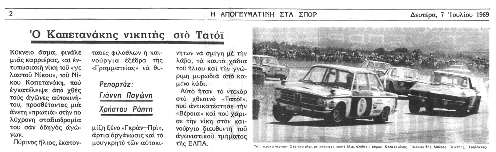 Δημοσίευμα του 1969 για τη νίκη του Καπετανάκη σε αγώνα στο Τατόι…
