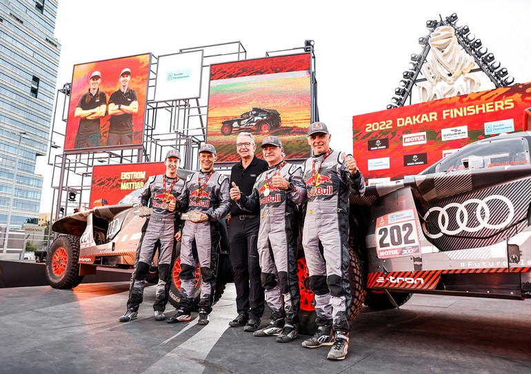 Το εντυπωσιακό είναι ότι στη ράμπα του τερματισμού, στη Σαουδική Αραβία, ανέβηκαν και τα τρία Audi RS Q e-tron που ξεκίνησαν τον αγώνα. Και πρέπει να ξέρετε ότι το Ντακάρ είναι ο πιο δύσκολος αγωνιστικός μαραθώνιος.Τα πληρώματα της Audi κέρδισαν τέσσερις από τις δώδεκα ειδικές διαδρομές του αγώνα.Τις δύο κέρδισε ο Carlos Sainz και από μία οι Stéphane Peterhansel και Mattias Ekström).