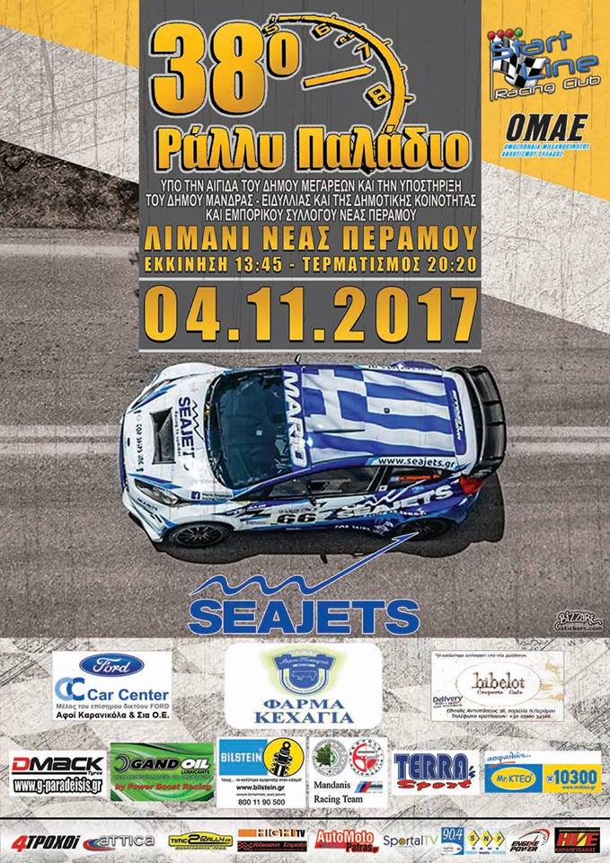 Το 38ου Ράλι Παλάδιο διοργανώνει και φέτος η λέσχη Start Line και αποτελεί μια σημαντική διοργάνωση Στο φετινό αγώνα θα έχουμε και νυχτερινές ειδικές διαδρομές…για τους ελληνικούς αγώνες αυτοκινήτου. Ο αγώνας θα διεξαχθεί το Σάββατο 4 Νοεμβρίου με επίκεντρο το λιμάνι της Νέας Περάμου και κύριο χαρακτηριστικό του είναι το νυχτερινό δεύτερο σκέλος.