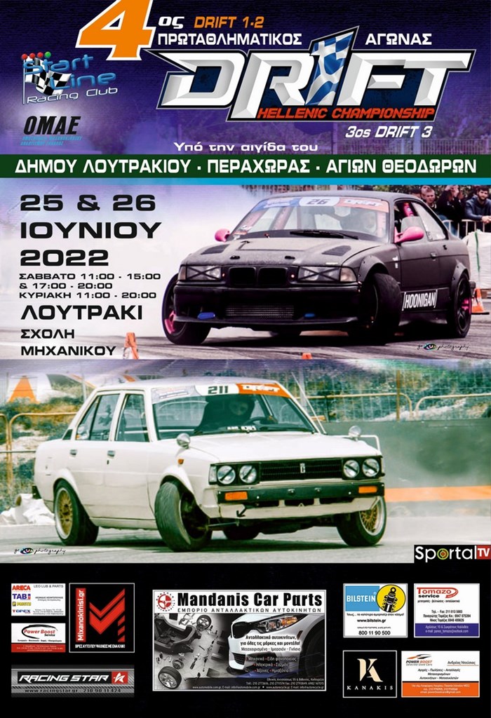 Η αντίστροφη μέτρηση για τον 4ο γύρο του Πανελλήνιου Πρωταθλήματος Drift & Κυπέλλου Drift άρχισε. Στις 25-26 Ιουνίου το Πανελλήνιο Πρωτάθλημα Drift επιστρέφει στη φιλόξενη Σχολή Μηχανικού Λουτρακίου. Τον αγώνα διοργανώνει η Start Line υπό την αιγίδα του Δήμου Λουτρακίου-Περαχώρας-Αγίων Θεοδώρων και το παρόν τους θα δώσουν οι θεαματικότεροι οδηγοί της Ελλάδος με τα εντυπωσιακά και καλοστημένα αυτοκίνητα τους ειδικά για την περίπτωση.