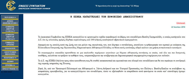 Η ανακοίνωση της Ένωσης Συντακτών στην επίσημη ιστοσελίδα της ΕΣΗΕΑ…