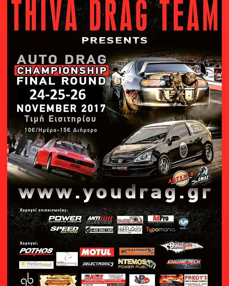 Η Thiva Drag Team διοργανώνει το Σαββατοκύριακο 24-25 Νοεμβρίου τον 6ο αγώνα του πανελληνίου πρωταθλήματος Dragster αυτοκινήτων στο αεροδρόμιο Ίκαρος στην Κωπαΐδα Θηβών.