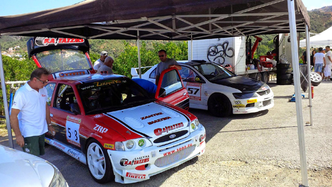 Το Ford Escort WRC με τα λογότυπα του zougla.gr στο παρμπριζ… Δεξιά το Mitsubishi EVO του Κώστα Πατσουρέα…