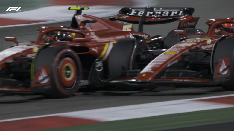 Απίθανη μάχη ρόδα με ρόδα για τις 2 Ferrari με τον Leclerc να μην αφήνει τον Sainz να τον περάσει, ενώ υπήρξε και υποψία επαφής.