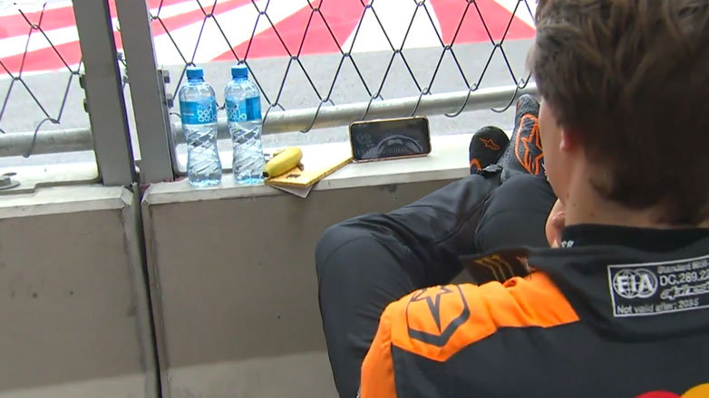 Ο Oscar Piastri είδε τον αγώνα από τον κινητό, παραμένοντας στη στροφή 5, στην οποία και είχε την έξοδό του