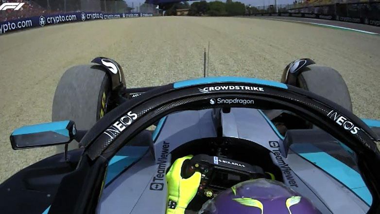 Η επαφή των οδηγών με τις αμμοπαγίδες είναι αρκετά συχνή. Τόσο ο Perez όσο και ο Hamilton «έγραψαν» αρκετά μέτρα μέσα σε αυτές.