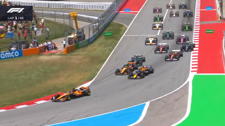 Τα πέντε φώτα έσβησαν και τα μονοθέσια ξεκίνησαν. Ο Piastri θα κάνει πολύ καλή εκκίνηση και θα προστατέψει την πρωτιά, σε αντίθεση με τον δεύτερο Norris που θα χάσει την θέση του από τον Verstappen. Παράλληλα, και οι δύο Ferrari θα κερδίσουν από μερικές θέσεις, δείχνοντας αποφασιστικότητα και γρήγορο ρυθμό.