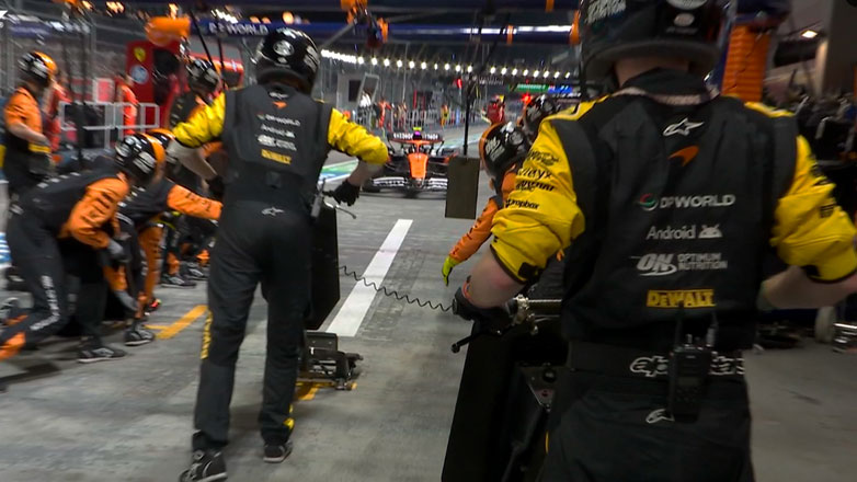 Ο πρωτοπόρος Norris θα μπει για αλλαγή ελαστικών στον 31ο από τους 62 γύρους του αγώνα και θα παραμείνει πρώτος μιας και είχε χτίσει τεράστια διαφορά.