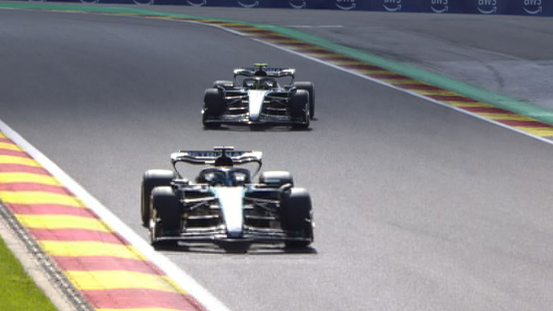 Στους τέσσερις τελευταίους γύρους, η μονομαχία των Russell – Hamilton είναι έντονη, με τον Oscar Piastri να καραδοκεί για ένα λάθος, έχοντας ρίξει την διαφορά κάτω από 1δευτ. Τελικά όμως το 1-2 για τη Mercedes θα έρθει, με τον Russell να παίρνει μία παλικαρίσια νίκη(1 pit stop λιγότερο) και την Mercedes να παραδίδει μαθήματα στρατηγικής.