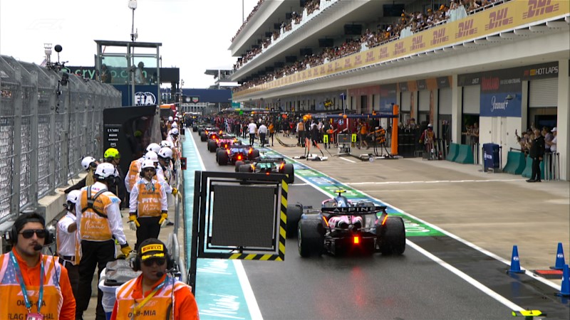 Ο πρώτος που μπήκε ήταν ο Tsunoda, και ακολούθησε ο Hamilton. Στη συνέχεια ο Antonelli πήρε εντολή να μπει για αλλαγή ελαστικών. Δεν πρόλαβε όμως να φθάσει, γιατί ο υπεύθυνος της Red Bull έδωσε το πράσινο φως να βγει ο Verstappen, που χτύπησε τον Antonelli, ο οποίος ξαφνιάστηκε, και συνέχισε να οδηγεί στα πίτς, χωρίς να κάνει αλλαγή.