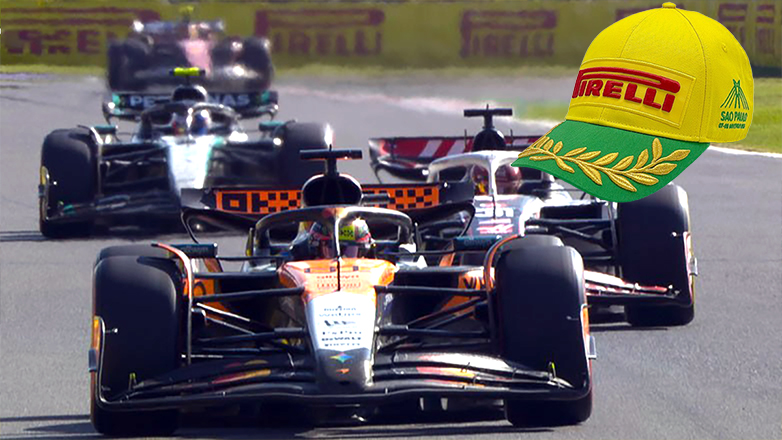 Αυτή την εβδομάδα, το καπέλο Pirelli Podium Cap είναι πράσινο και κίτρινο, αντικατοπτρίζοντας τα χρώματα της εθνικής σημαίας της Βραζιλίας. Η ειδική αυτή έκδοση, την οποία θα φορέσουν οι οδηγοί στο βάθρο, παράγεται από την Pirelli Design με σχεδιαστή τον Denis Dekovic.