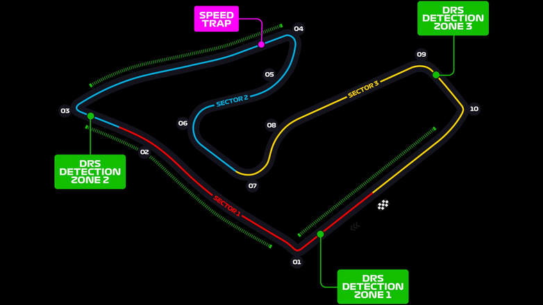 Υπάρχουν τρεις ζώνες DRS, γεγονός που καθιστά αυτόν τον αγώνα έναν από τους πιο συναρπαστικούς του ημερολογίου. Η πίστα χρησιμοποιείται συχνά, με αγώνες τόσο αυτοκινήτων όσο και μοτοσυκλετών επομένως η επιφάνεια της, έχει ήδη αρκετό λάστιχο από την αρχή του Σαββατοκύριακου.