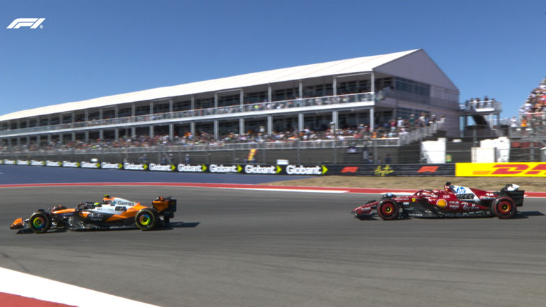 Ο Norris θα “κυνηγήσει” για πολλούς γύρους τον δεύτερο Leclerc (είχε ξαναβρεθεί δεύτερος ο Μονεγάσκος μετά το pit stop), όμως μετά από αρκετές προσπάθειες θα τα… παρατήσει και θα βρεθεί τελικά 3 δευτ. πίσω. Ο ίδιος θα πει στο team radio πως νιώθει ότι δεν έχει πρόσφυση και αδυνατεί να επιτεθεί. Όμως φαίνεται πως τελικά απλά έπαιρνε το χρόνο του, καθώς μετά από μερικούς γύρους θα πλησιάσει στο μισό δευτ. από τον Leclerc και τελικά θα επιτεθεί. Ο Μονεγάσκος παίζει απίθανη άμυνα, όμως ο Norris θα τον περάσει τελικά, ελάχιστους γύρους πριν τον τερματισμό.