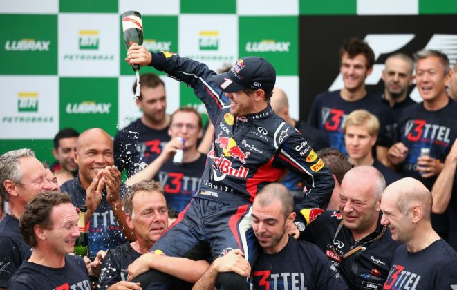 Ακόμα ένα τρόπαιο προσέθεσε στη συλλογή του ο Sebastian Vettel έπειτα από μία συγκλονιστική τελευταία παράσταση στην πίστα Interlagos της Βραζιλίας. Ο Γερμανός πιλότος της Red Bull υπερασπίστηκε επιτυχώς τον θρόνο του, παρά τις αντιξοότητες και τις δυσκολίες που συνάντησε στους 71 γύρους που διήρκεσε ο τελευταίος αγώνας της χρονιάς. Έτσι, ξεκινώντας από την 4η θέση τερμάτισε τελικά στην 6η και οι βαθμοί που απέσπασε ήταν αρκετοί για να… πετάξει στα ουράνια.