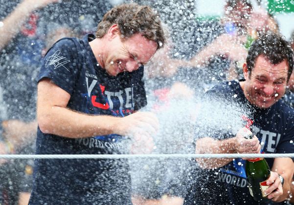 «Είναι δύσκολο να φανταστείτε τι περνά από το μυαλό μου τώρα, κατακλύζομαι από αδρεναλίνη! Ήταν ένας απίστευτος αγώνας, όλα όσα θα μπορούσαν να συμβούν για να κάνουν το έργο μας πιο δύσκολο συνέβησαν! Με χτύπησαν στην τέταρτη στροφή και βρέθηκα ανάποδα στον δρόμο. Ήμουν τυχερός που δεν έπεσε πάνω μου κάποιο άλλο μονοθέσιο. Το δικό μου είχε ζημιές και χάναμε σε τελική ταχύτητα στις ευθείες, ειδικά όταν το οδόστρωμα άρχισε να στεγνώνει. Ευτυχώς, η βροχή επέστρεψε. Όλο το τριήμερο υπήρχε μία τάση που έλεγε πως, αν έβρεχε στον αγώνα, θα ήμασταν εμείς αυτοί που θα είχαμε πρόβλημα. Όμως, αποδείξαμε πως οι αγώνες σε βρεγμένο οδόστρωμα μας αρέσουν όσο κι εκείνοι σε στεγνό. Είμαι πολύ χαρούμενος. Το σημαντικότερο όλη τη σεζόν ήταν πως συνεχίζαμε να πιέζουμε και να είμαστε ο εαυτός μας. Προσπαθούμε να κάνουμε τη δουλειά μας, να παραμένουμε στον δρόμο που γνωρίζουμε κι αυτό ήταν που έκανε τη διαφορά. Κάποιοι προσπαθούν να παίξουν παιχνίδια, αλλά σε κανένα σημείο δεν χάσαμε τον προσανατολισμό μας, συνεχίσαμε στην προδιαγεγραμμένη μας πορεία. Όλοι στο Milton Keynes αλλά και εδώ στην πίστα, δούλεψαν σκληρά και συνέβαλαν τα μέγιστα ώστε να βελτιωθούμε τόσο στο δεύτερο μισό της σεζόν. Θέλω να ευχαριστήσω όλους στην ομάδα μας αλλά και όλους στη Renault. Δεν υπάρχει κάποιος σε αυτήν την ομάδα που νιώθει πιο σημαντικός από οποιονδήποτε άλλο συνάδελφό του, μοχθούμε όλοι μαζί, αποτελούμε μία ενιαία και ισχυρή δύναμη και είμαι πολύ περήφανος για αυτό. Είναι απίστευτο αυτό που έχει συμβεί. Η κατάκτηση του τρίτου παγκόσμιου τίτλου, ειδικά εδώ, στον τόπο καταγωγής του Ayrton Senna που είναι ένας από τους ήρωες μου, γεννά συναισθήματα δύσκολο να αποτυπωθούν σε λέξεις. Έκλαιγα στο μονοθέσιο, αλλά ο ασύρματος μου δεν λειτουργούσε. Ευτυχώς! Ίσως αύριο (σ.σ. σήμερα) να μπορώ να πω περισσότερα, αλλά αυτήν τη στιγμή δεν έχω λόγια».
