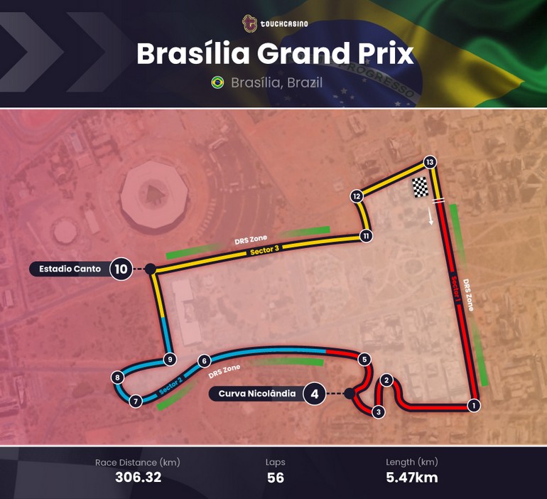 Στη δεύτερη θέση έχουμε τη Βραζιλία με 1,4 εκατομμύρια μηνιαίες αναζητήσεις. Βρίσκεται εκεί η πίστα του Σάο Πάολο που είναι επί του παρόντος προορισμός στο Ημερολόγιο της Φόρμουλα 1 για το 2022 και είναι εδώ και πολλά χρόνια. Ωστόσο, η Βραζιλία δεν έχει δει ακόμα πίστα δρόμου. Αυτή η ιδέα θα έβλεπε μια πίστα που βρίσκεται στη Μπραζίλια, που εκτείνεται σε 56 γύρους της πίστας 5,47 χιλιομέτρων, με συνδυασμό πολλών ευθειών, ιδανικών για ζώνες DRS, σε πιο τεχνικά τμήματα που περιβάλλονται από το πόλη.