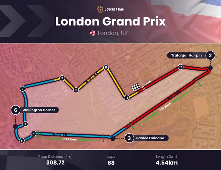 Το Ηνωμένο Βασίλειο είναι η πέμπτη και τελευταία πρόταση του TouchCasino.com με 500.000 μηνιαίες αναζητήσεις. Πρόσφατα πραγματοποιήθηκε το Βρετανικό Γκραν Πρι στο Σίλβερστοουν, το οποίο είδε τον Κάρλος Σάιντζ να πετυχαίνει την πρώτη του νίκη σε αγώνα στην ιστορική πίστα. Με τόσο τεράστιες δυνατότητες για ένα δευτερεύον βρετανικό GP, έχει δημιουργηθεί μια ιδεαλιστική πίστα που θα έβλεπε τους οδηγούς της Formula 1 να βγαίνουν στους δρόμους του Λονδίνου, σε 68 γύρους της πίστας 4,54 χιλιομέτρων.