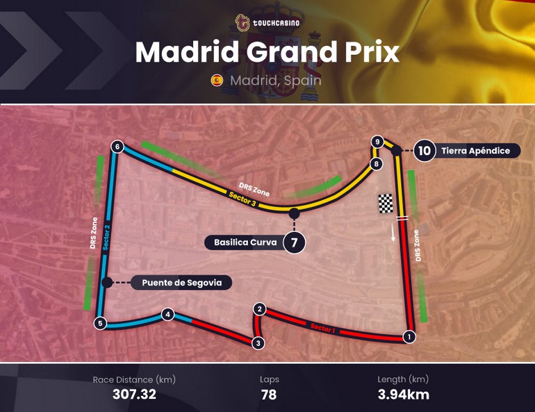 652.000 μηνιαίες αναζητήσεις βλέπουν την Ισπανία να κατατάσσεται στην τέταρτη θέση. Αυτή η πίστα δρόμου θα προσθέσει ένα δεύτερο ισπανικό Grand Prix στο πρόγραμμα της Formula 1, παράλληλα με το Circuit de Barcelona-Catalunya. Αυτός ο αγώνας θα πραγματοποιηθεί στην πρωτεύουσα της Ισπανίας, τη Μαδρίτη, που βρίσκεται μόλις 5 χιλιόμετρα μακριά από το διάσημο στάδιο Santiago Bernabéu της Ρεάλ Μαδρίτης.