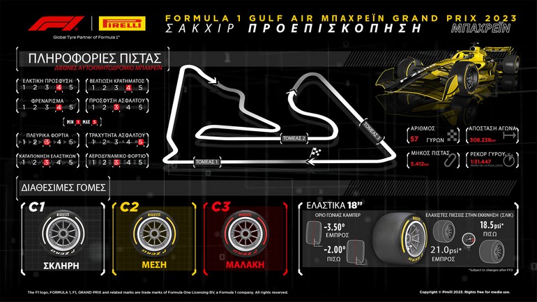 Βασίζεται στην περσινή C2, αυτό μας επιτρέπει να μειώσουμε τη διαφορά απόδοσης ανάμεσα στις σκληρότερες γόμες της γκάμας μας. Εκτιμούμε ότι θα αποτελέσει χρήσιμη επιλογή για τον αγώνα του Σαββατοκύριακο. Το προσπέρασμα μέσω στρατηγικής, σταματώντας νωρίτερα για αλλαγή ελαστικών ‘undercut’ είναι εφικτό στο Grand Prix, του Bahrain . Θα έχει ενδιαφέρον λοιπόν να δούμε πως θα χρησιμοποιήσουν οι ομάδες τη νέα παράμετρο στην τριάδα γομών που επιλέχθηκε για το Sakhir.»