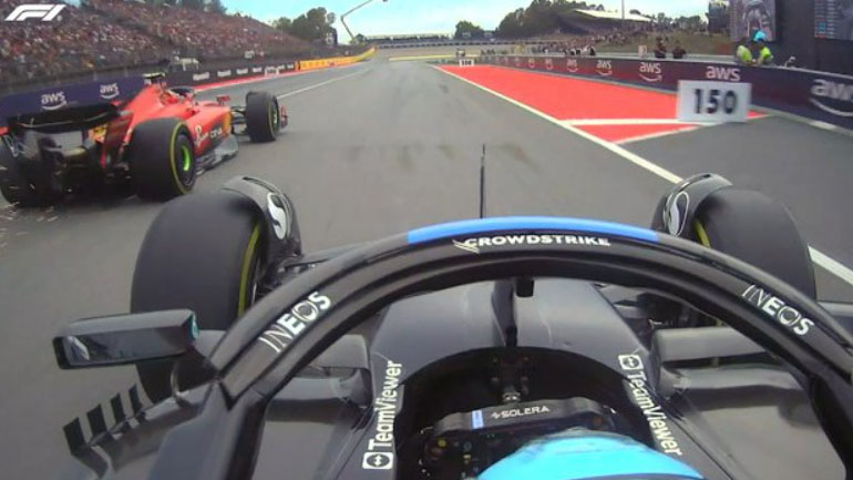 Μία τέτοια ήταν η προσπέραση του Russell στον τρίτο Sainz, με τον οδηγό της Mercedes να τα δίνει όλα και πιάνοντας 332χλμ./ώρα να περνάει τελικά στα φρένα της στροφής των Ισπανό.