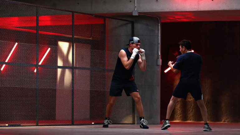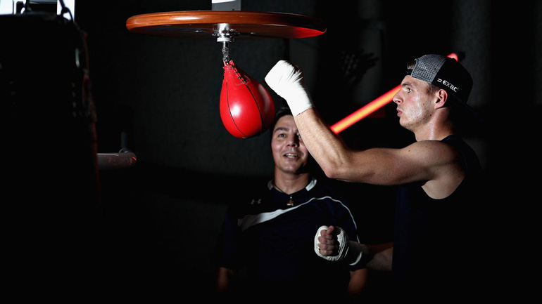 Ο Ολλανδός οδηγός της Red Bull Racing έβγαλε για λίγο τη φόρμα και δοκίμασε τις ικανότητές του στο μποξ, έχοντας τη βοήθεια ενός παγκόσμιου πρωταθλητή.