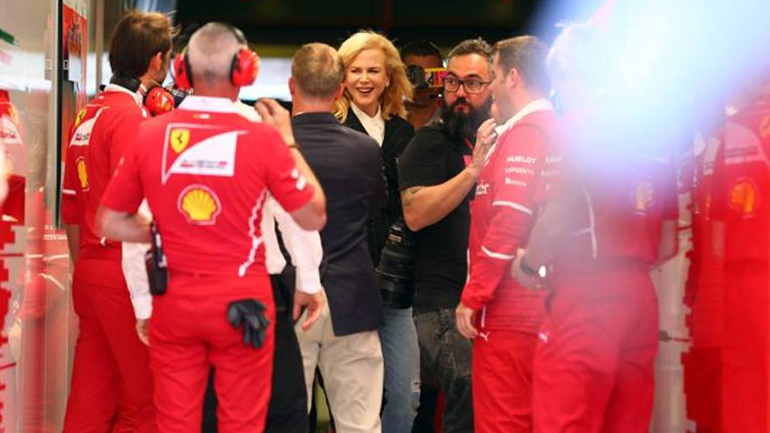 Στο γκαράζ της ιταλικής ομάδας βρέθηκε το περασμένο Σάββατο η Nicole Kidman, στο πλαίσιο του Grand Prix της Αυστραλίας, παρακολουθώντας από κοντά τη διαδικασία των κατατακτήριων δοκιμών.
