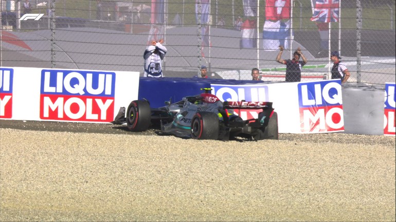 Στο Q3 έγινε ο χαμός. Ο Hamilton ήθελε έναν καλό χρόνο. Ωστόσο η έξοδος του δεν οφειλόταν σε δικό του λάθος. Σε μια αριστερή στροφή πάτησε στα κέρμπ και το μονοθέσιό του ακυβέρνητο έφυγε με τα πλάγια και χτύπησε στα προστατευτικά λάστιχα. Το μονοθέσιο φάνηκε να έχει αρκετά μεγάλη ζημιά ωστόσο ο Hamilton δεν έπαθε τίποτα.