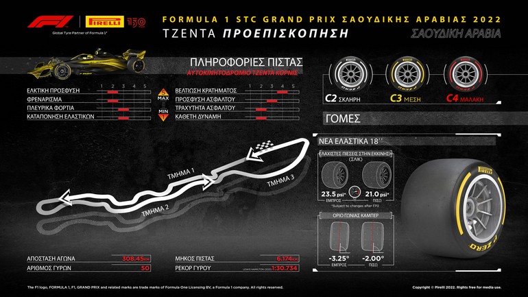 Οι συνθήκες θα είναι διαφορετικές από την τελευταία επίσκεψή μας στη Σαουδική Αραβία καθώς ο αγώνας γίνεται τώρα σε διαφορετική εποχή ενώ έχουν αλλάξει και κάποια σημεία της διαδρομής. Οι επιλεγμένες γόμες είναι ίδιες με το 2021 αλλά η κατασκευή τους είναι τελείως διαφορετική από πέρυσι. Ως αποτέλεσμα οι ομάδες θα έχουν πολύ δουλειά για να μαζέψουν όσο το δυνατόν περισσότερα στοιχεία από τις ελεύθερες δοκιμές ειδικά το FP2 που είναι η μόνη αντιπροσωπευτική περίοδος χρονικά, με τις κατατακτήριες δοκιμές και τον αγώνα».