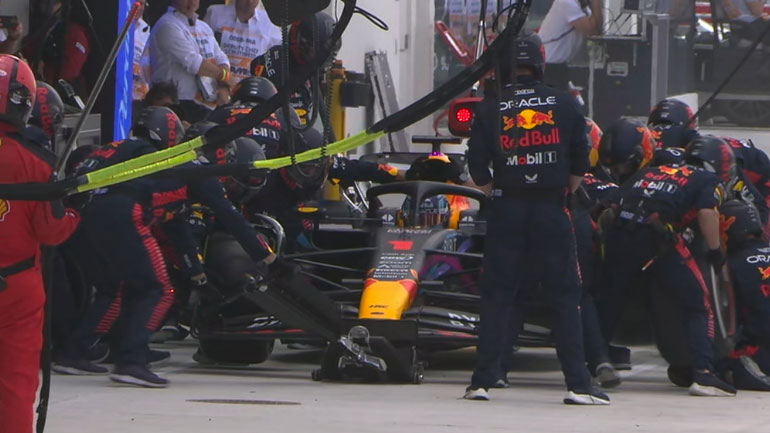 Μεγάλη μάχη ανάμεσα στις δύο Red Bull όπου μετά από μερικές στροφές ο περσινός πρωταθλητής Max Verstappen θα πάρει στην πρώτη θέση, έχοντας πλέον φρέσκια μέση γόμα. Ο Perez έχει σκληρά ελαστικά 28 γύρων.
