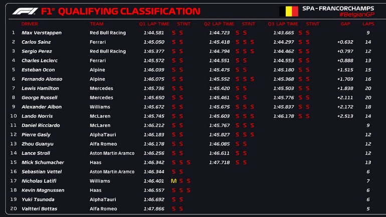 Ο σημερινός αγώνας στο Βέλγιο έχει ιδιαίτερο ενδιαφέρον. Οι πρωτοπόροι του πρωταθλήματος ξεκινούν από την τελευταία θέση αφού η FIA τιμώρησε τις ομάδες για τις αλλαγές στις μονάδες ισχύος. Ο Max Verstappen και ο Charles Leclerc που ξεκινούν από την 15η και 16η θέση αντίστοιχα θα προσπαθήσουν να κάνουν αμέσως τις εύκολες προσπεράσεις για να φτάσουν όσο το δυνατόν πιο γρήγορα στην κορυφή.