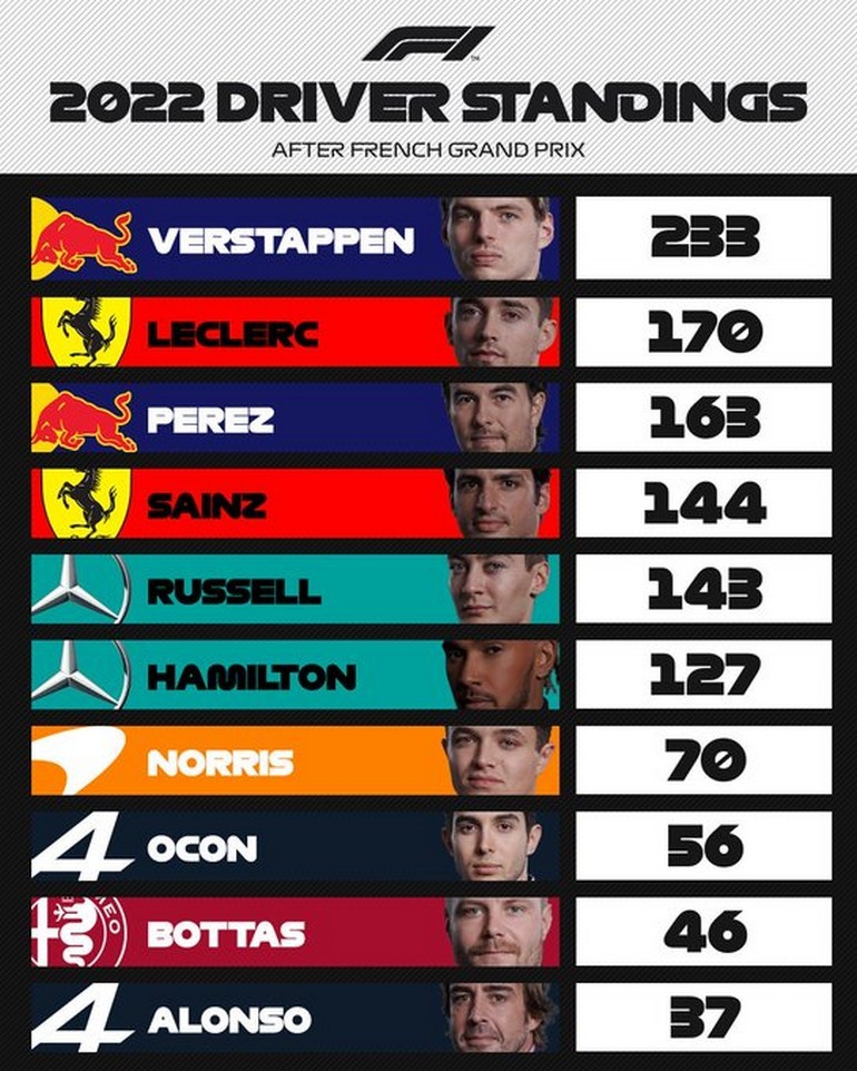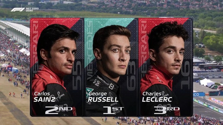 Πίσω από τον Russel βρίσκεται ο C Sainz και στην 3η θέση είναι ο Leclerc . Τέταρτος ξεκινάει ο Norris με την McLaren.