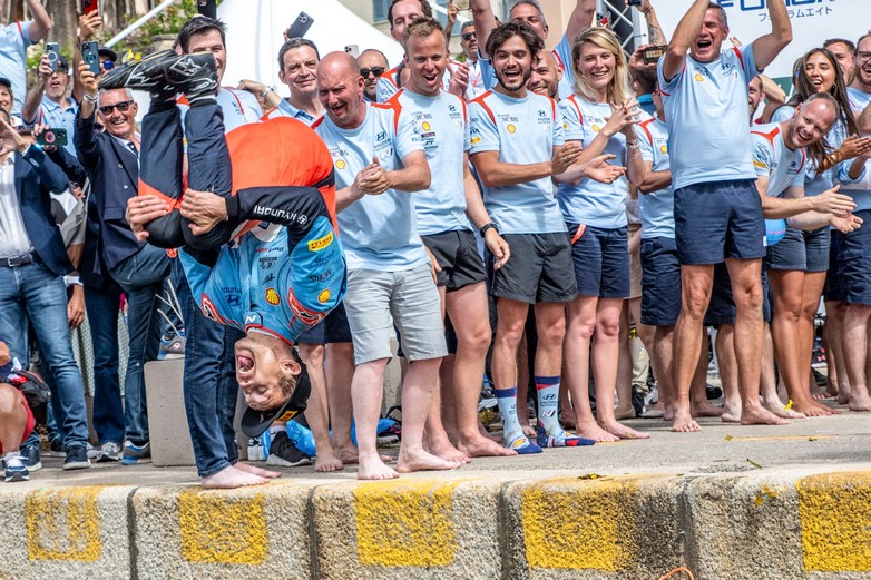 Δεν χρειαζόταν και πολύ για να γίνει το πάρτι μέσα στη θάλασσα. Αμέσως μετά τις βουτιές των Ott Tanak και Martin Jarveoja, η θάλασσα γέμισε με όλο το αγωνιστικό τήμ της Hyundai.