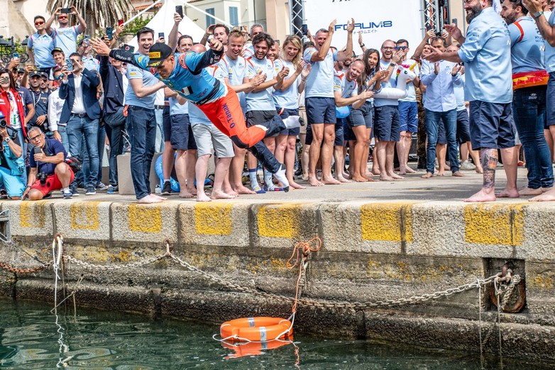 Ο Ott Tanak χωρίς να το πολυσκεφθεί, έτσι όπως ήταν με τα ρούχα (μόνο το κράνος και τα γάντια είχε βγάλει) έκανε ένα απίθανο μακροβούτι και βρέθηκε στη θάλασσα.