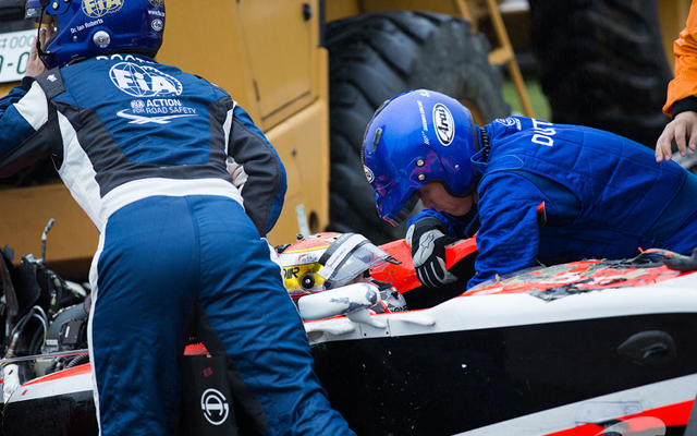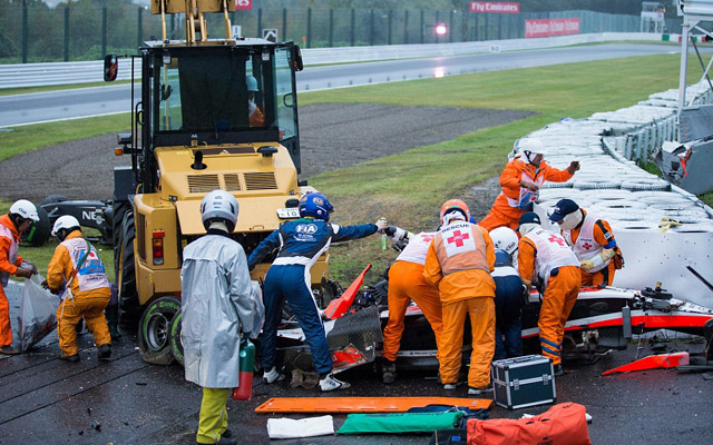 Θυμίζουμε πως στις 5 Οκτωβρίου, στην πίστα της Suzuka, ο Jules Bianchi τραυματίστηκε σοβαρά όταν χτύπησε με το μονοθέσιο του πάνω στον γερανό που είχε πάει για να ρυμουλκήσει το μονοθέσιο του Sutil. O Γάλλος υπέστη σοβαρές κρανιοεγκεφαλικές κακώσεις και αυτή τη στιγμή νοσηλεύεται στο πανεπιστημιακό νοσοκομείο της Νίκαιας, στην πατρίδα του.