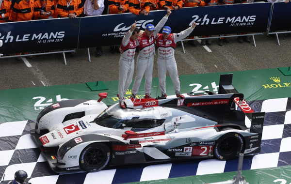 To τριμελές πλήρωμα (Lotterer, Faessler και Treluyer), πέτυχε την τρίτη του νίκη στον πιο φημισμένο μαραθώνιο αγώνα αυτοκινήτων, οδηγώντας το R18 e-tron quattro. Στη δεύτερη θέση, με τρεις γύρους διαφορά, τερμάτισαν οι Tom Kristensen, Luca di Grassi και Marc Gene, επίσης με Audi R18 e-tron quattro.