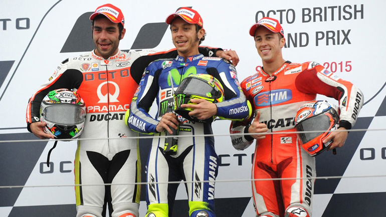Το podium στο GP της Βρετανίας ήταν ιταλική υπόθεση, με τον Danilo Petrucci να κάνει ένα υπέροχο αγώνα και μάλιστα σε βρεγμένο οδόστρωμα και να ανεβαίνει στο δεύτερο σκαλί του βάθρου. Τρίτος ήταν ο Andrea Dovizioso, με τον Dani Pedrosa να μένει στην πέμπτη θέση. Ο Scott Redding σήκωσε ψηλά τη βρετανική σημαία, τερματίζοντας έκτος και σημειώνοντας το καλύτερο αποτέλεσμα της καριέρας του στο MotoGP.