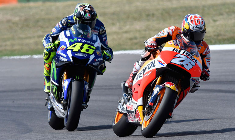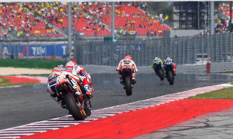 Ο Rossi οδηγούσε την κούρσα επτά γύρους πριν από το τέλος, εν μέσω αποθέωσης από τους χιλιάδες συμπατριώτες του. Κάπου εκεί, όμως, ο Pedrosa τον πέρασε και εξασφάλισε σχετικά άνετα την πρώτη φετινή του νίκη και 29η στη μεγάλη κατηγορία. Ο VR46 παραδέχθηκε πως ήταν αδύνατον να ανταγωνιστεί τον Dani, όπως και ο Jorge Lorenzo που συμπλήρωσε το πόντιουμ των νικητών.
