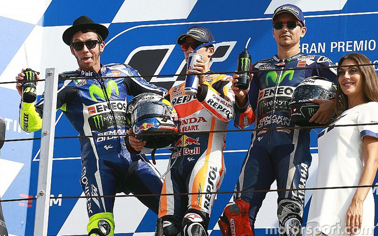 Πιο πίσω, ο Marc Marquez είχε πετάξει λευκή πετσέτα, τερματίζοντας στην τέταρτη θέση. Ο πρωτοπόρος του πρωταθλήματος παραμένει το ακλόνητο φαβορί για τον τίτλο, έχοντας διαφορά 43 βαθμών από τον Rossi στη γενική βαθμολογία. Ο Vinales δεν μπόρεσε να πετύχει τίποτα περισσότερα από την πέμπτη θέση, με τις δύο Ducati, των Andrea Dovizioso και Michele Pirro, να ακολουθούν.