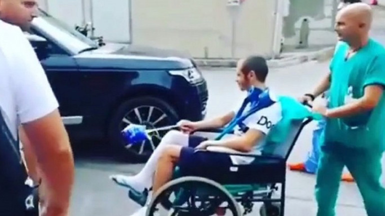 Σε αναπηρικό καροτσάκι και με τις πατερίτσες ανά χείρας αποχώρησε από το νοσοκομείο του Ospedali Riuniti της Ανκόνα, ο Valentino Rossi.