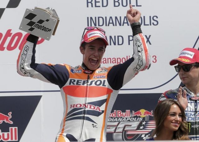 Ο νεαρός Ισπανός πανηγύρισε στο δέκατο GP της σεζόν, στην πίστα της Ιντιανάπολις, την τέταρτη νίκη συνολικά και τρίτη συνεχόμενη, παίρνοντας σημαντικό προβάδισμα στη γενική βαθμολογία.Στα του αγώνα, ο αναβάτης της Repsol Honda έχασε δύο θέσεις με την εκκίνηση αλλά κατάφερε έπειτα από 12 γύρους να βρεθεί και πάλι πρώτος, αφήνοντας πίσω του τους Lorenzo και Pedrosa.