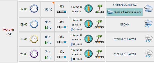 Η πρόβλεψη του καιρού για την ημέρα του αγώνα…