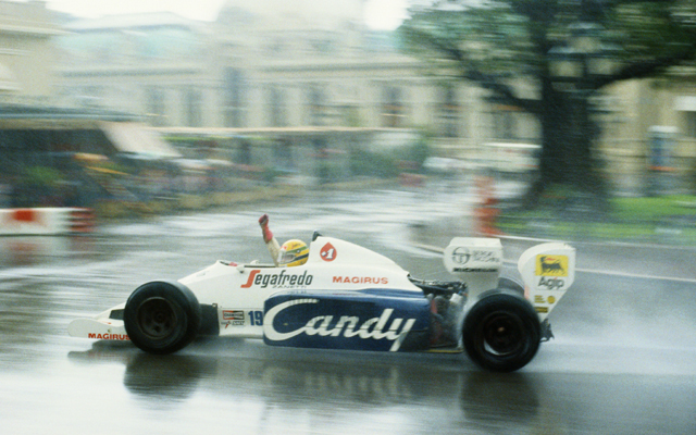 Την ίδια αγωνιστική περίοδο, με αυτό το μονοθέσιο, άρχισε να γράφει την ιστορία του. Στο GP του Μονακό ξέσπασε καταιγίδα, όμως ο Senna έτρεχε με απίστευτους ρυθμούς κατακτώντας τη δεύτερη θέση πίσω από τον Alain Prost. Φυσικά θα μπορούσε να κερδίσει, αν δεν διέκοπταν τον αγώνα οι αγωνοδίκες. Εκείνη την ημέρα απέκτησε τη φήμη του ανίκητου στο βρεγμένο.