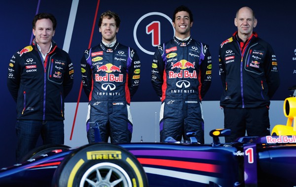 Christian Horner, Sebastian Vettel, Daniel Ricciardo και Adrian Newey